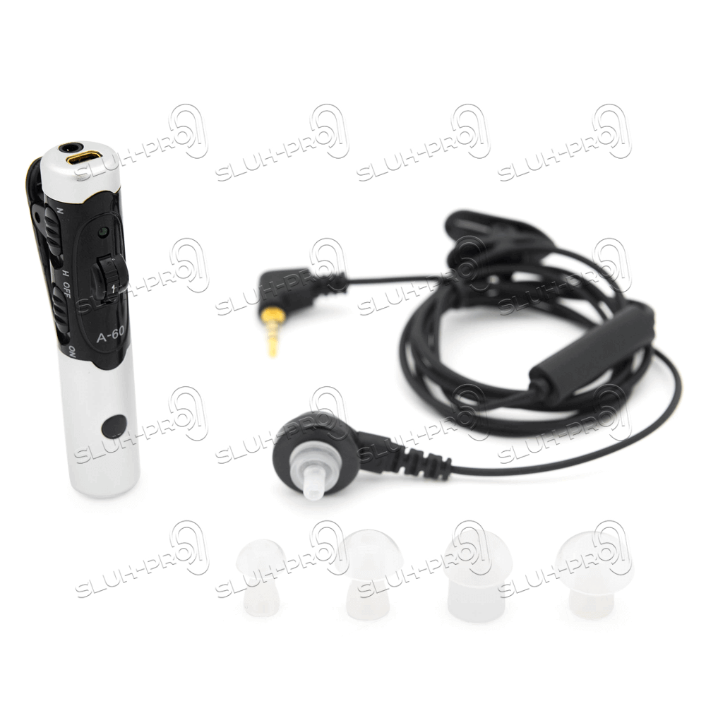 Слуховой аппарат Axon A-60 подойдет для людей с серьезными нарушениями слуха. Прибор позволяет хорошо воспринимать и различать речь и звуки, не «забывать» слуховые ощущения. Перед первым применением рекомендуется выставить громкость на минимум. Встроенный аккумулятор можно перезаряжать до 10000 раз, заряда хватает на 25 часов непрерывной работы. Прибор обеспечивает усиление звука в 58 дБ +/- 5. Предпочтительнее носить аппарат в том ухе, которое слышит лучше. В комплекте есть 4 сменных вкладыша из мягкого силикона.